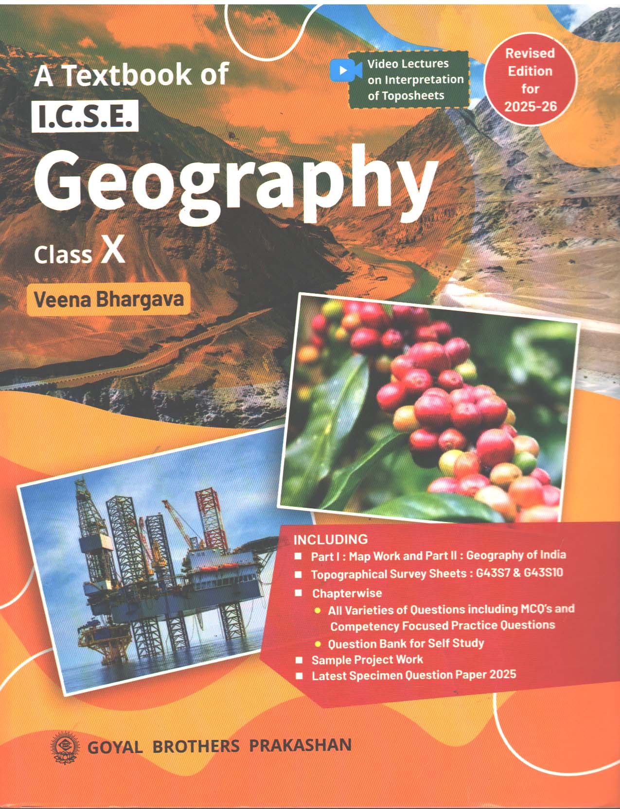 A Textbook Of (I.C.S.E) Geography For Class -10, 2025-26 Edition By Veena Bhargava